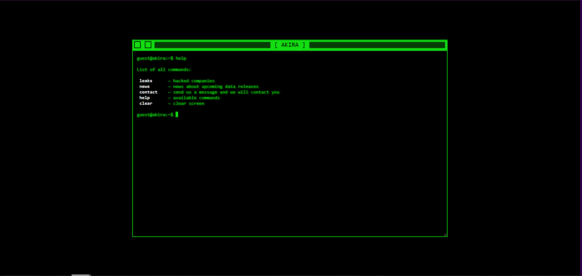 The Akira ransomware blog is organized into five sections. The “Leaks” section lists victims who refused to pay the ransom, leading the group to publicly release their encrypted data. The “News” section highlights new victims, likely organizations currently engaged in ransom negotiations.