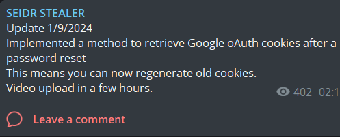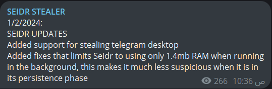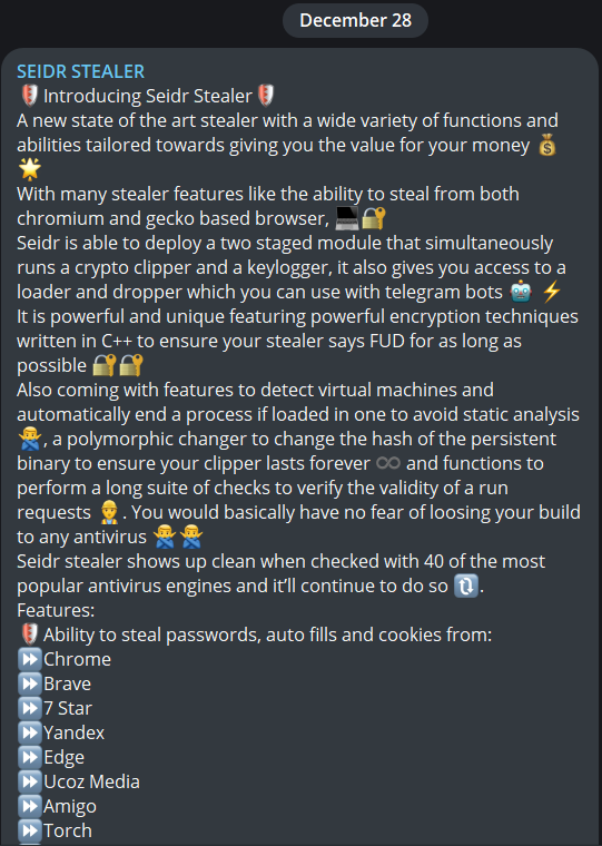 On December 28, a new info-stealer called SEIDR Information Stealer appeared on