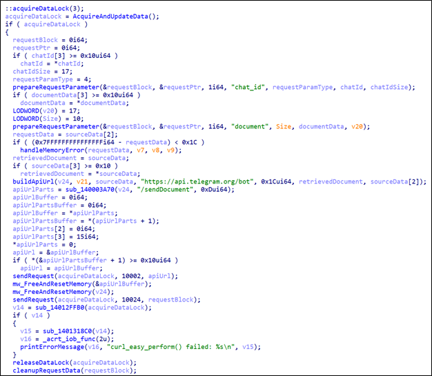 The malware compresses the log folder into a ZIP file and then sends it via Telegram.