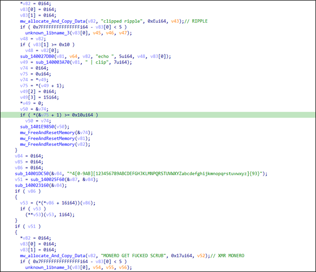The malware combines a keylogger with regular expressions to harvest and steal clipboard data. The malware’s modular has specific regular expressions to identify and target cryptocurrency wallet addresses.