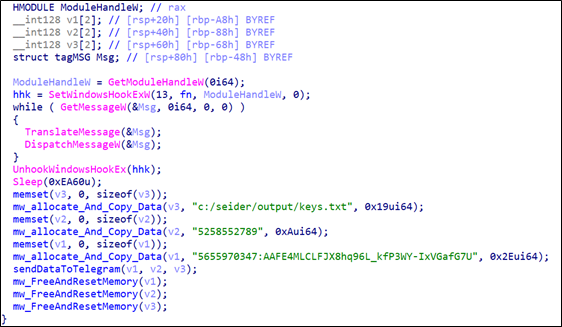 Then. Seidr Stealer can log the keystrokes and send them to a telegram chatbot.