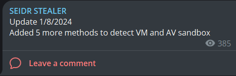 Seidr Stealer implemented various techniques to detect if it runs on virtual machines and sandboxes.
