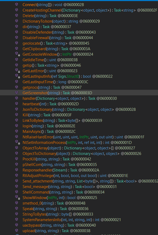 As discussed earlier, this RAT is armed with a wide array of capabilities, and the function names themselves give a clear picture of their purposes, so we don’t need to explore every function in detail.